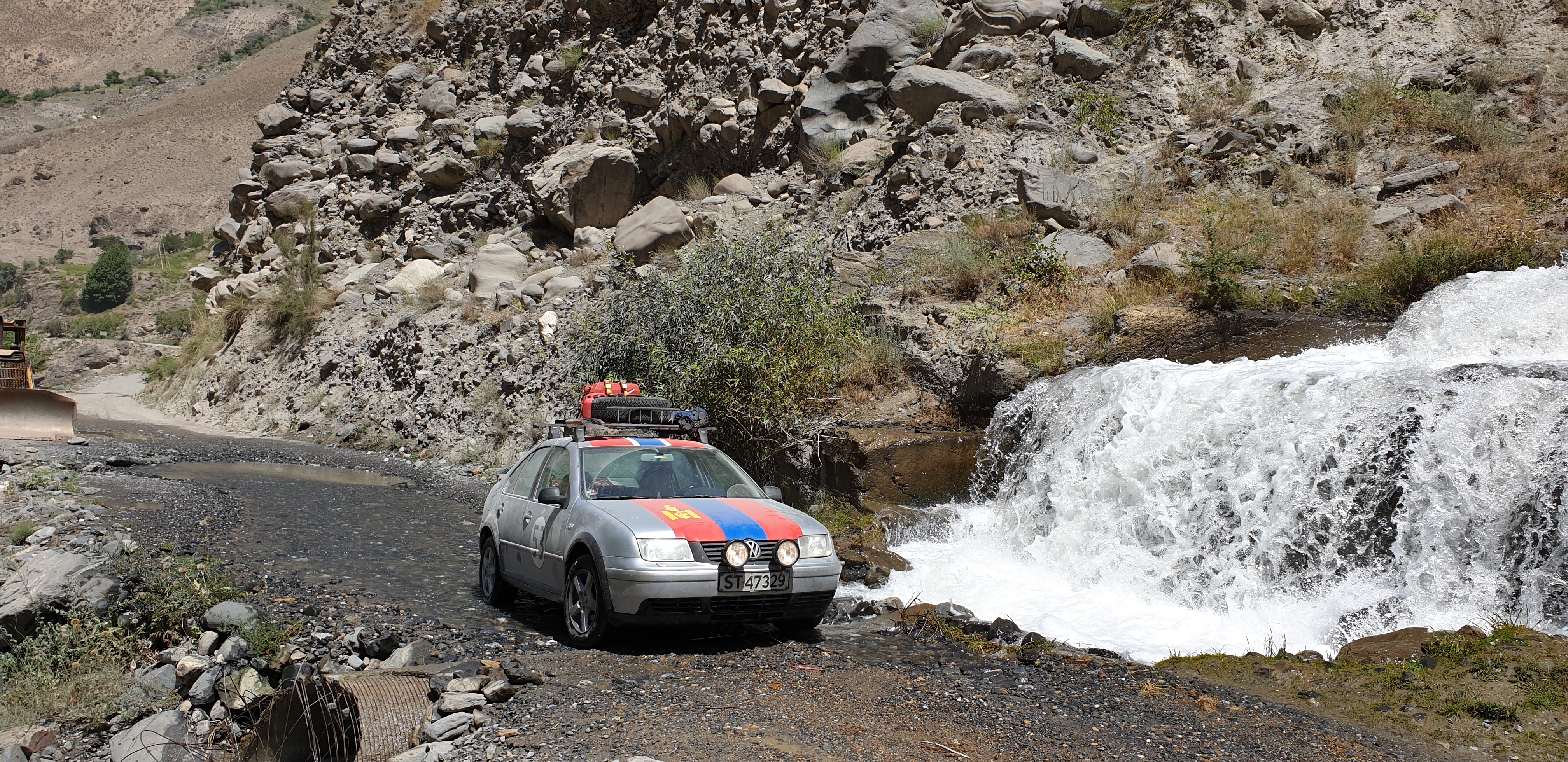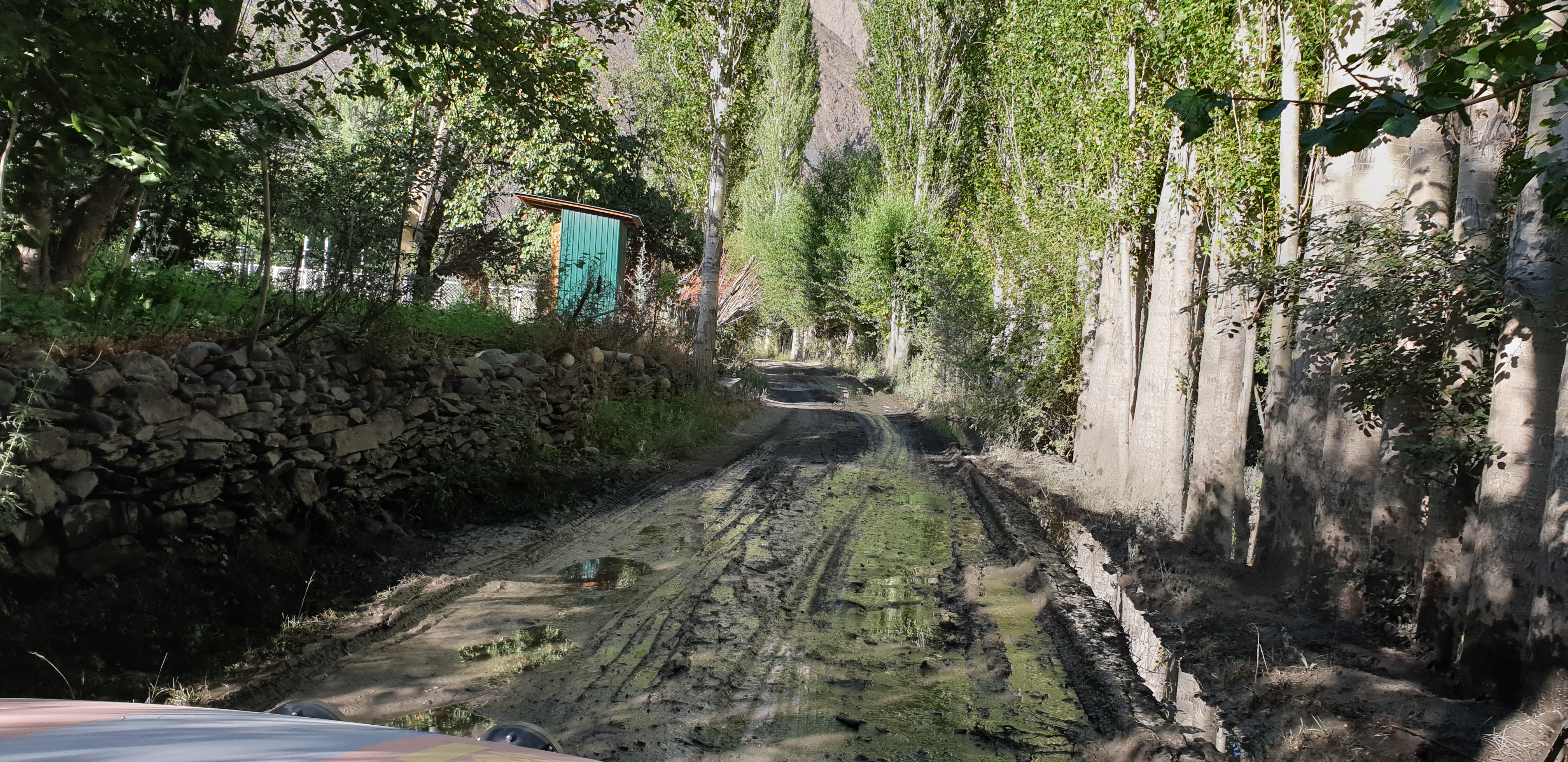 Dagen etter viste det seg at Dilovan ikke klarte å reparere lekkasjen i kjølevæskesysgemet uten nye deler som måtte hentes fra Dubai via Russland. Dette ville fort ta 3-4 dager, 3-4 dager som vi ikke har. Løsningen ble derfor å kjøpe med 5 liter kjølevæske fra han i tillegg til at han blandet i et pulver som kunne gjøre en viss tetting innenfra da han fylte opp med ny kjølevæske. Hans beste råd til oss videre var å følge sporene og kjøre som de lokale – de kjente veiene og visste om hvert hull og hver hump(!). Kursen ble satt mot Qal’ai Khumb og Khorugh.